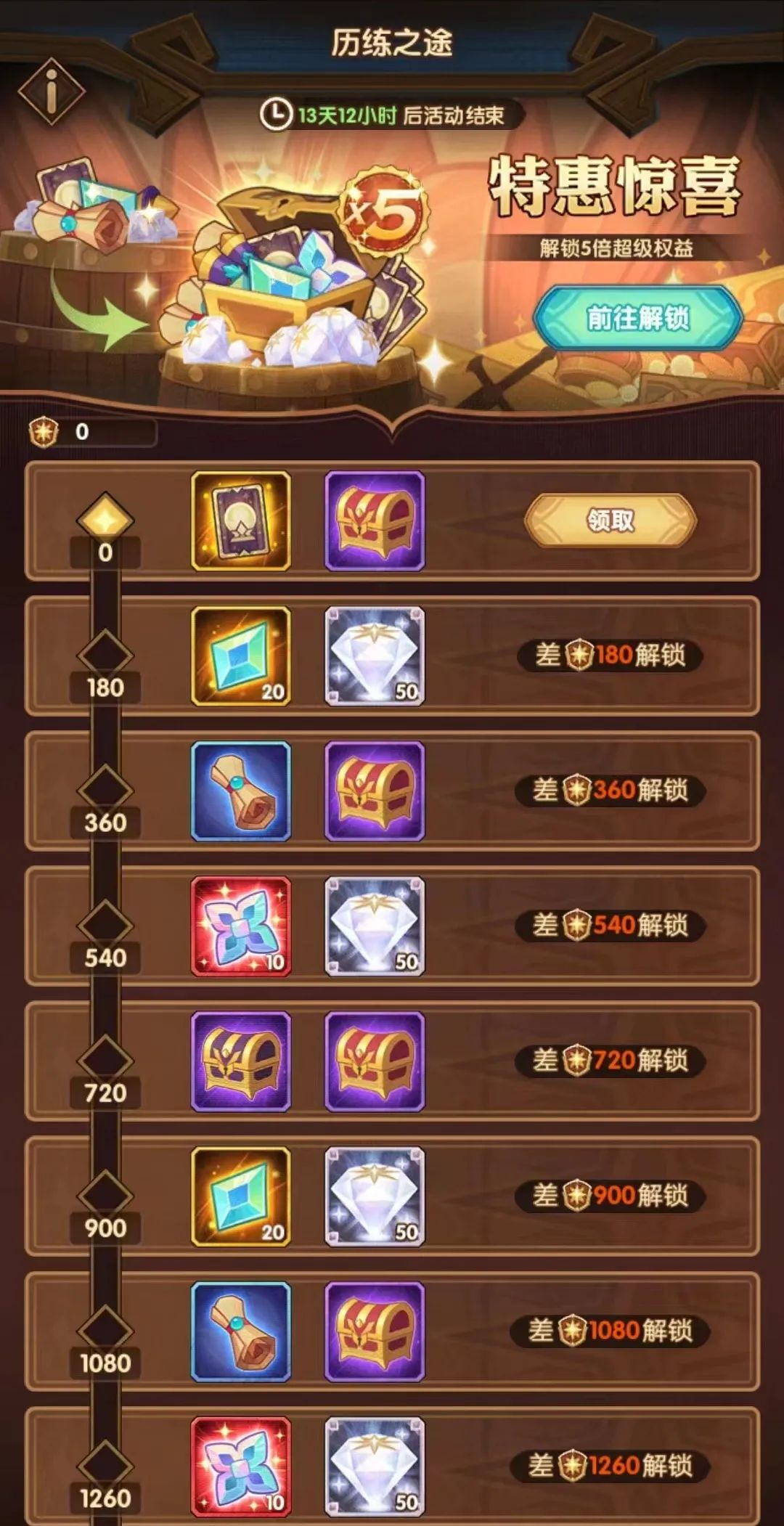 4.历练之途结束时,所有已解锁但是未领取的奖励将会通过邮件发放。