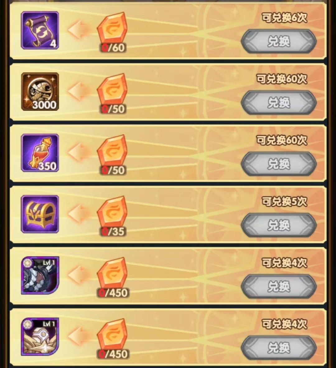 活动可兑换奖励一览