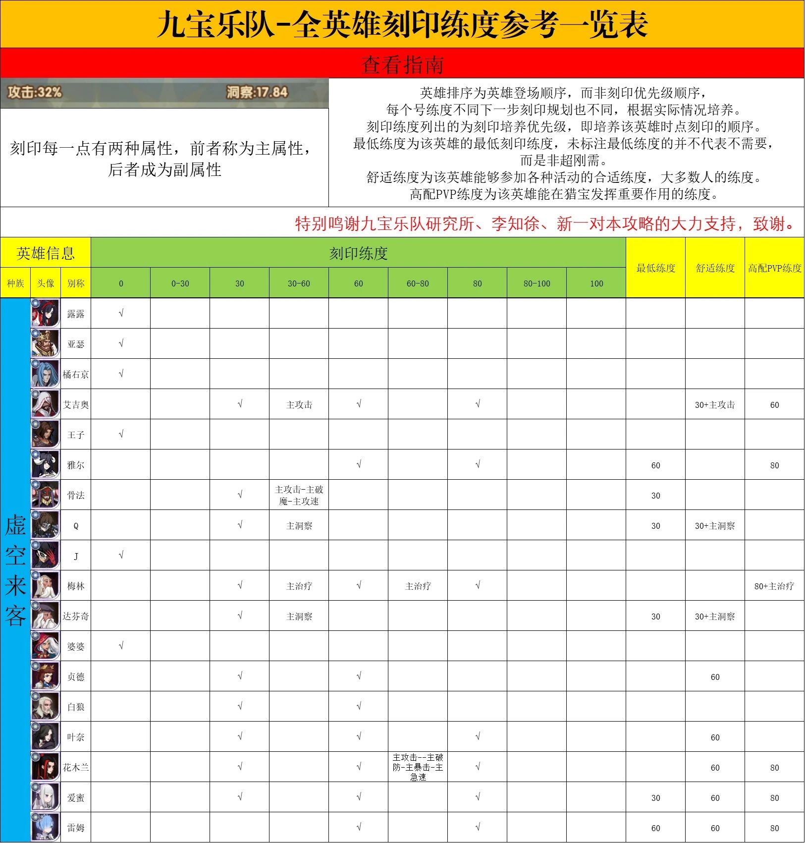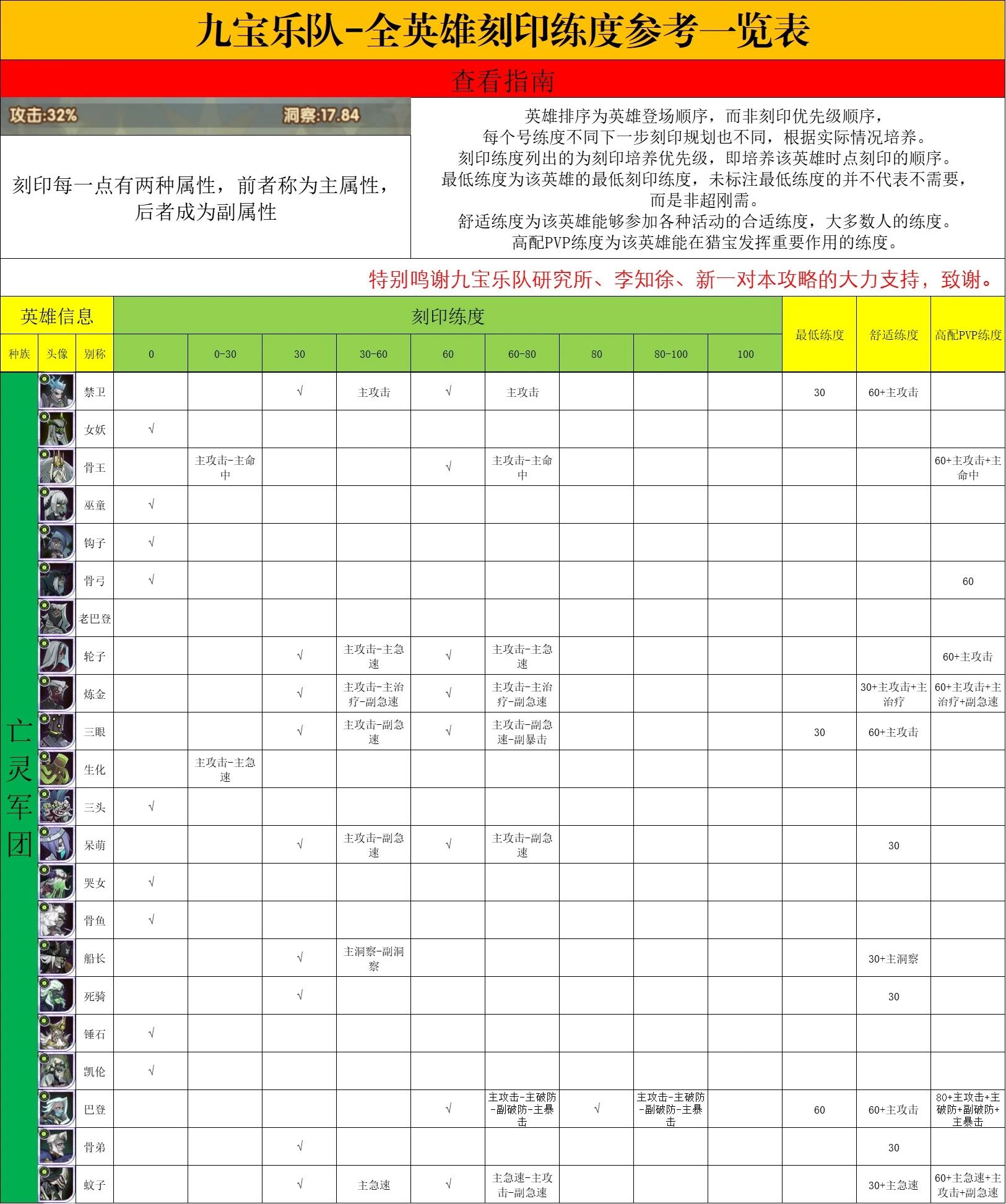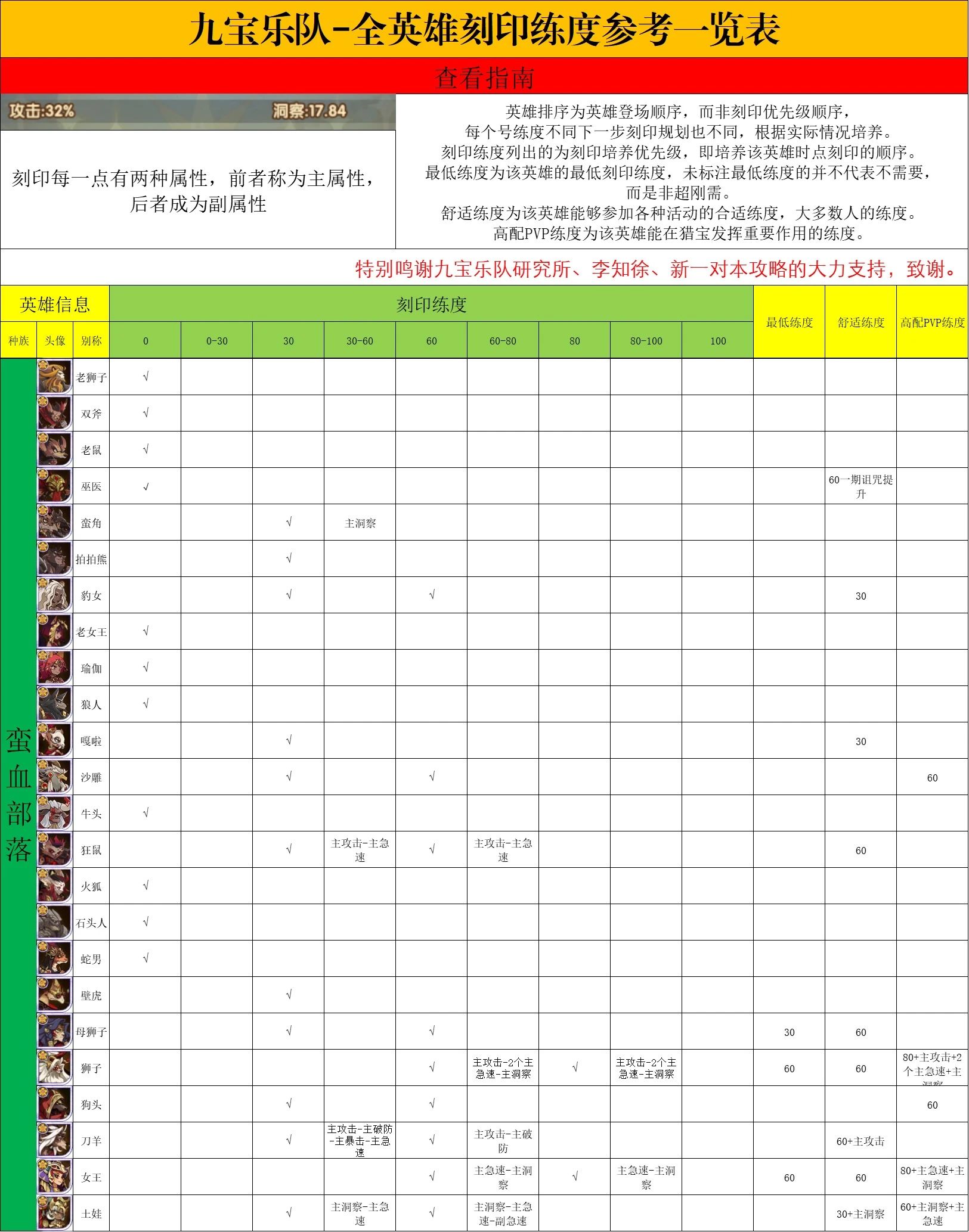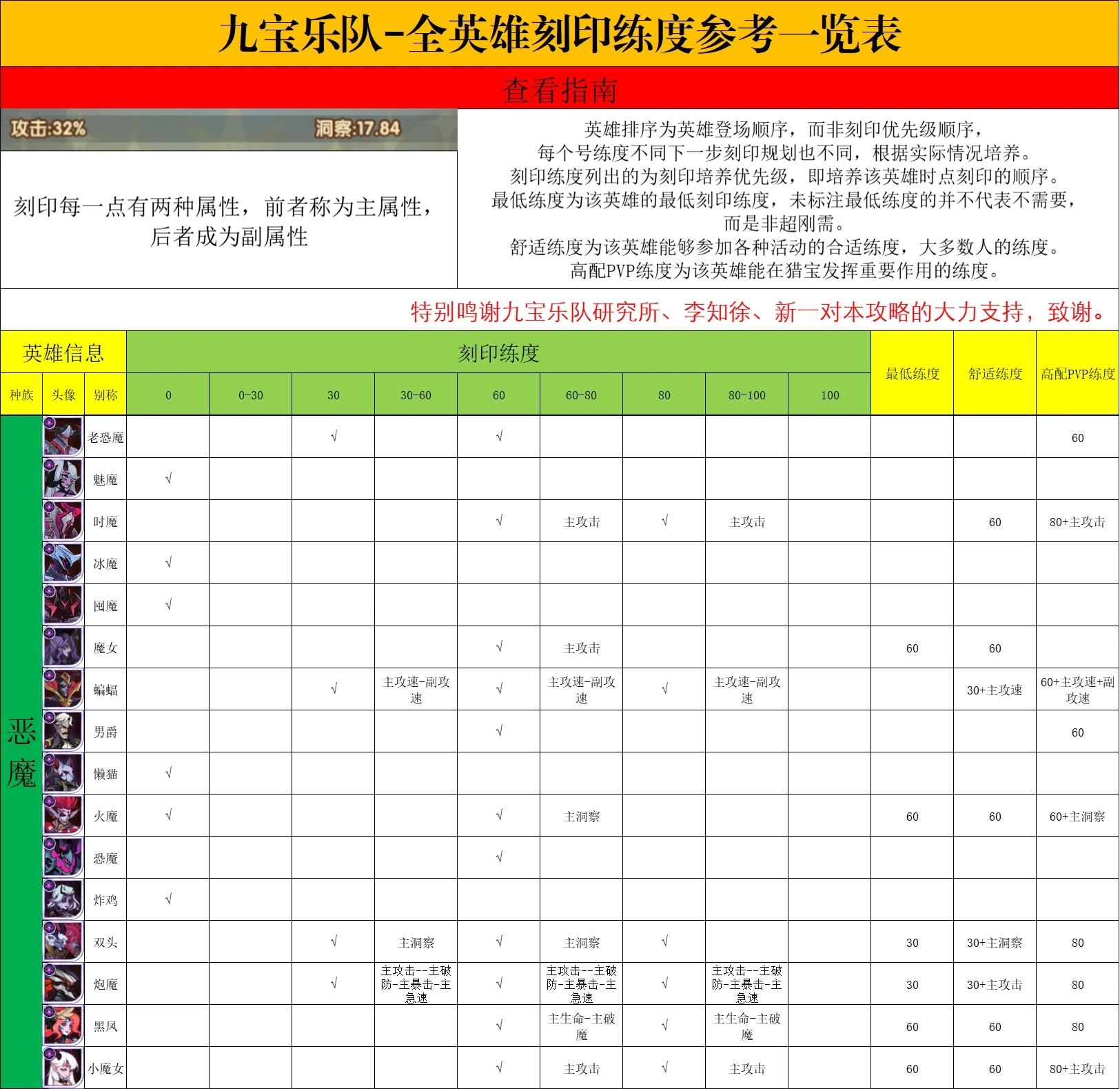 3、刻印最低练度为该英雄使用的最低刻印等级,未标注最低练度的并不代表不重要,而是非超刚需;