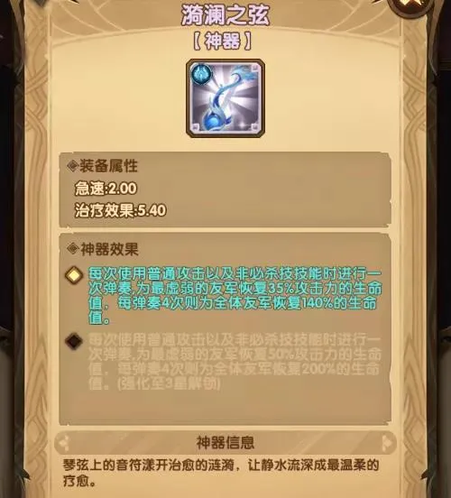 2.新增辅助职业专属神器- 漪澜之弦,该职业专属神器可在主神试炼副本-风蚀之峡中获取。