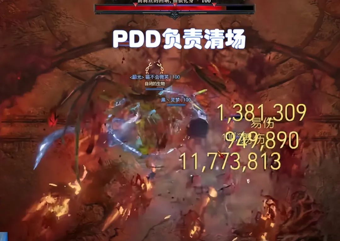 但是PDD在第二阶段只能躺在地上观战,因为他们经过反复尝试发现“BOSS使用技能的频率跟场上活着的玩家的数量挂钩”。由于野蛮人没有任何免伤技能,只能使用走位躲避技能,根本没法在P2混乱的场面上生存,他坚持参战的话不仅不能提供有效的输出,反而会让BOSS更频繁释放“火龙果技能”从而增加队友负担,所以只能躺在地板上给队友加油了。最后队伍全通之后,水友们都戏称“带猪过关”。