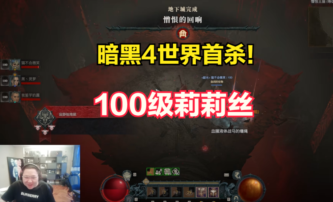好了,PDD、黑灵梦和猫不会微笑3人组合世界首杀100级莉莉丝,全通暗黑4第一个版本的过程就给大家介绍到这里。