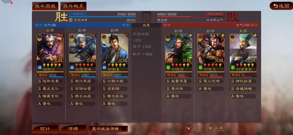 这队显而易见就是爆头,靠极多的突击战法打爆头线,不过控制也不少(混乱,计穷),而后郭嘉提供主将洞察,减伤;