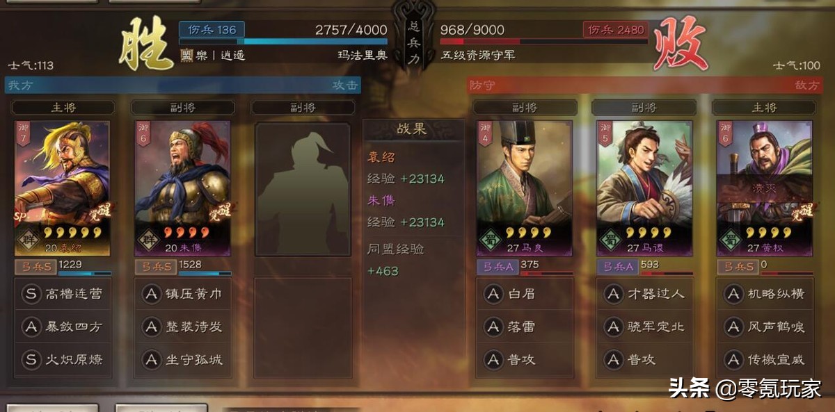 20级后,同样是先打黄权、马谡蜀弓,有朱儁降低伤害,战损就没那么大。