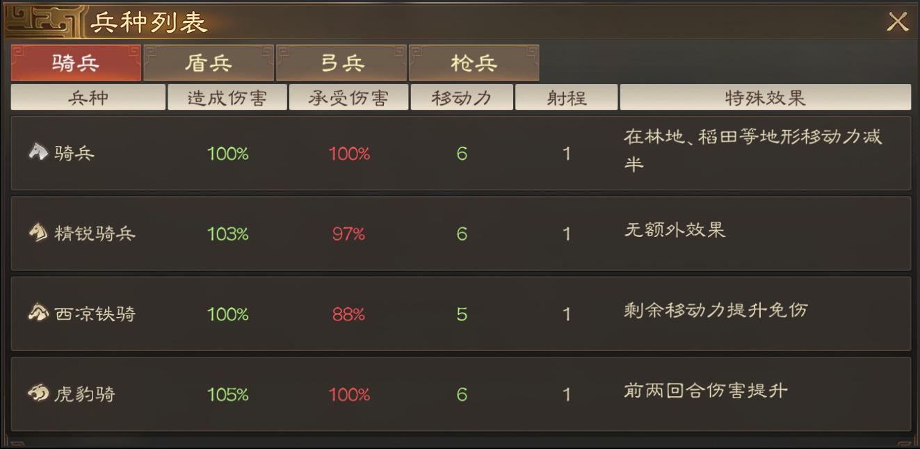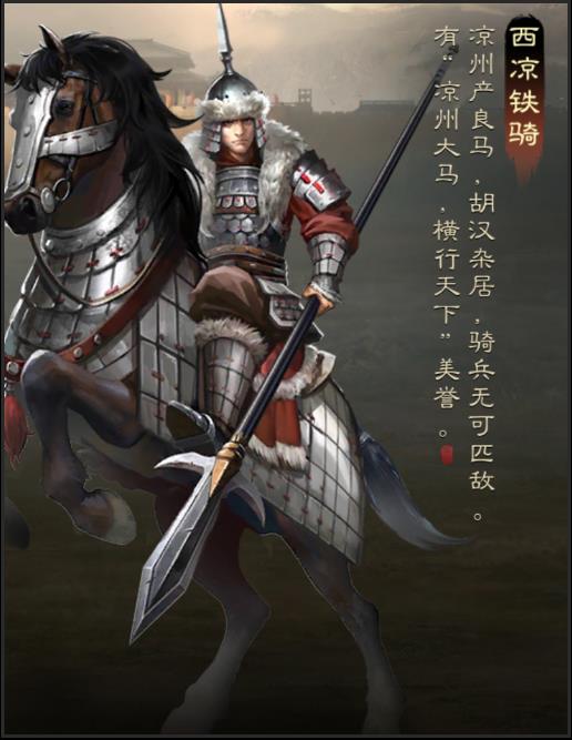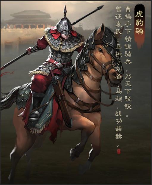 【骑兵高级兵种】骑兵高级兵种则是知名的三类,分别是:<西凉铁骑>、<虎豹骑>和<精锐骑兵>。