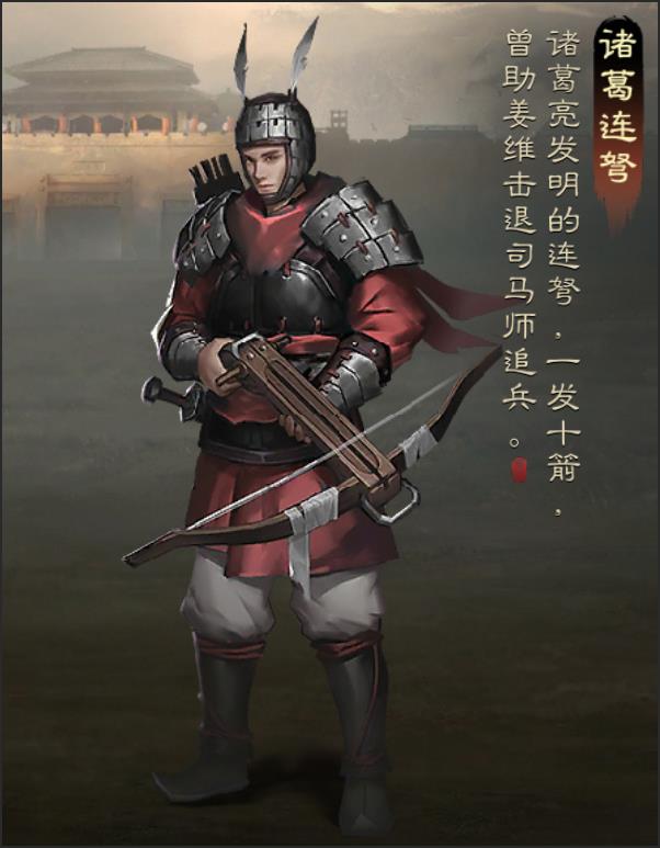 <诸葛连弩>是偏伤害型兵种,该兵种行动结束后对四格内兵力最低的敌人造成一定百分比的溃逃伤害(无视防御);范围伤害的存在不仅增加了携带该兵种武将的额外输出,还更考验进攻和防守方的走位策略;进攻方需要进一步考虑如何每次都能触发兵种特性,而防守方则可以考虑利用“替死鬼“来替核心武将承担溃逃伤害。