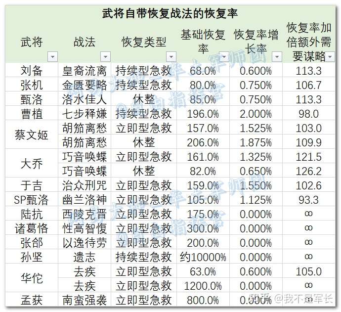 图二:武将自带恢复战法的恢复率。