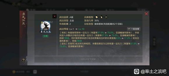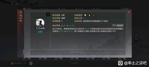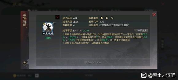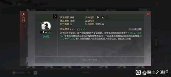 太弱了,主要是给菜刀攻击距离+1,额外给的属性是真的低(毕竟是内测就有的战法,数值很低),友军只有前3回合享受加成,很垃圾。