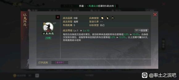 伤害率太低了,作为需要准备的物理战法,有很多比他优秀。
