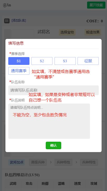 4、宝物和兵种信息战报里有就必填,加点可不填。